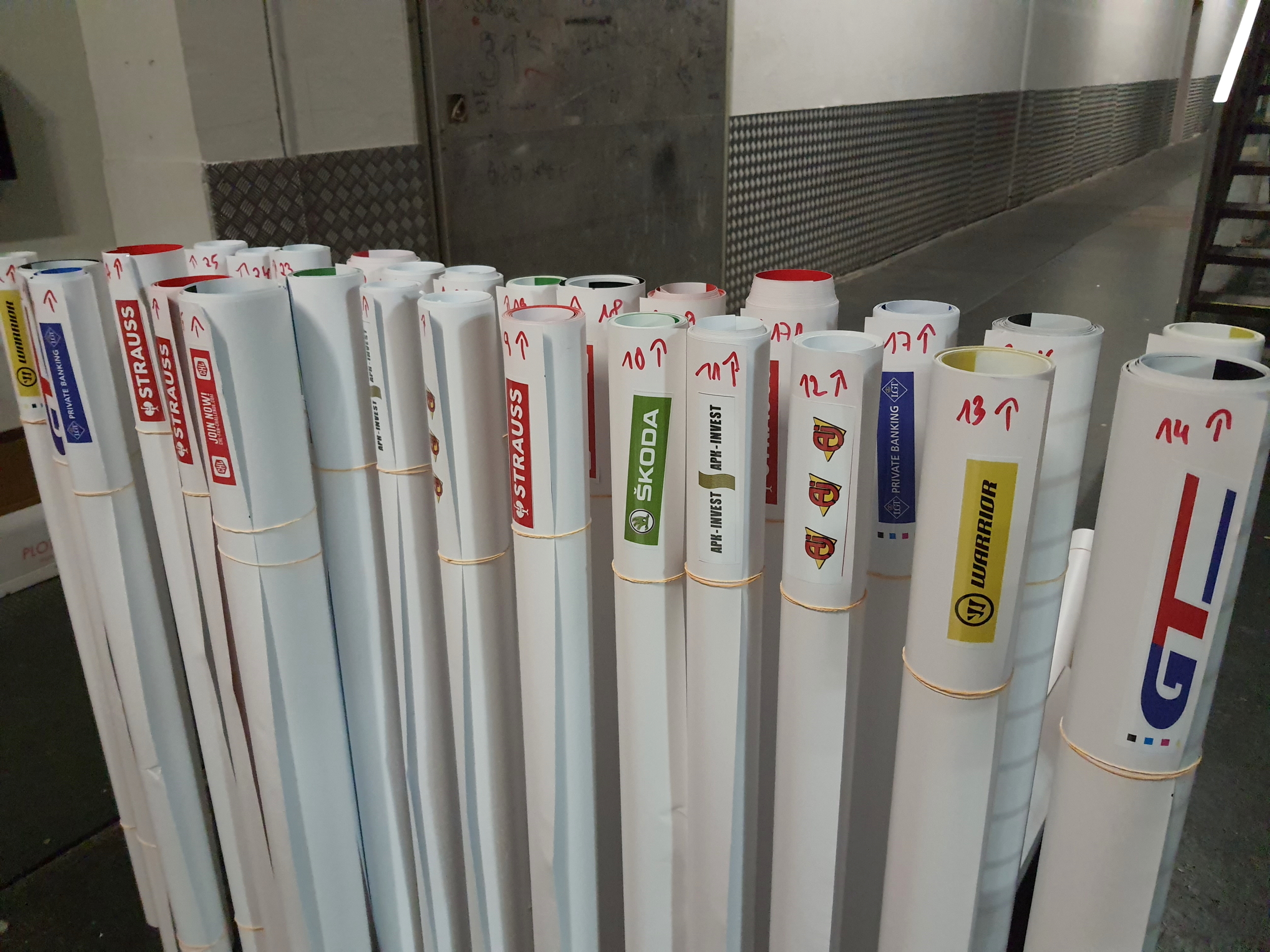In der Nacht zum heutigen Spieltag wurde in der Stadthalle eifrig gearbeitet, im letzten Schritt des mehrstufigen Prozesses, die alt-ehrwürdige Spielstätte zumindest optisch CHL-fit zu machen, wurden in den vergangenen Stunden die Banden entsprechend der Vorgaben der Champions Hockey League beklebt. In Europas wichtigstem Klubbewerb gilt seit jeher der sogenannte „Clean Approach“, was bedeutet, dass die Halle – insbesondere im Sichtbereich der TV-Kameras – völlig frei von Werbe- und Sponsorenflächen sein muss, die nicht dem sehr exklusiven Kreis der kommerziellen Partner der CHL angehören.