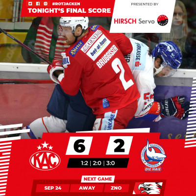 Bereits in Runde zwei der aktuellen bet-at-home ICE Hockey League-Saison trafen der EC-KAC und der HC Innsbruck aufeinander, die Rotjacken siegten am 18. September 2021 auf eigenem Eis mit 6:2. Die Begegnung verlief jedoch deutlich ausgeglichener, als es das Ergebnis vermuten ließe, die Haie waren in den ersten beiden Abschnitten ein Gegner auf Augenhöhe. Insgesamt verbrachten die Haie in dieser Partie 46,3 Prozent ihrer Zeit mit Scheibenbesitz in der Offensivzone – Höchstwert für einen KAC-Gegner im laufenden Spieljahr. Bestimmende Spieler der Klagenfurter in dieser Begegnung waren Nick Petersen, der einen Hattrick verbuchte (8., 57. und 59.), und Clemens Unterweger, der die Partie mit einem Plus/Minus-Rating von +3 und einer Corsi-For-Percentage von 73,2 Prozent (30:11 Torschussversuche, während er am Eis stand) beendete.