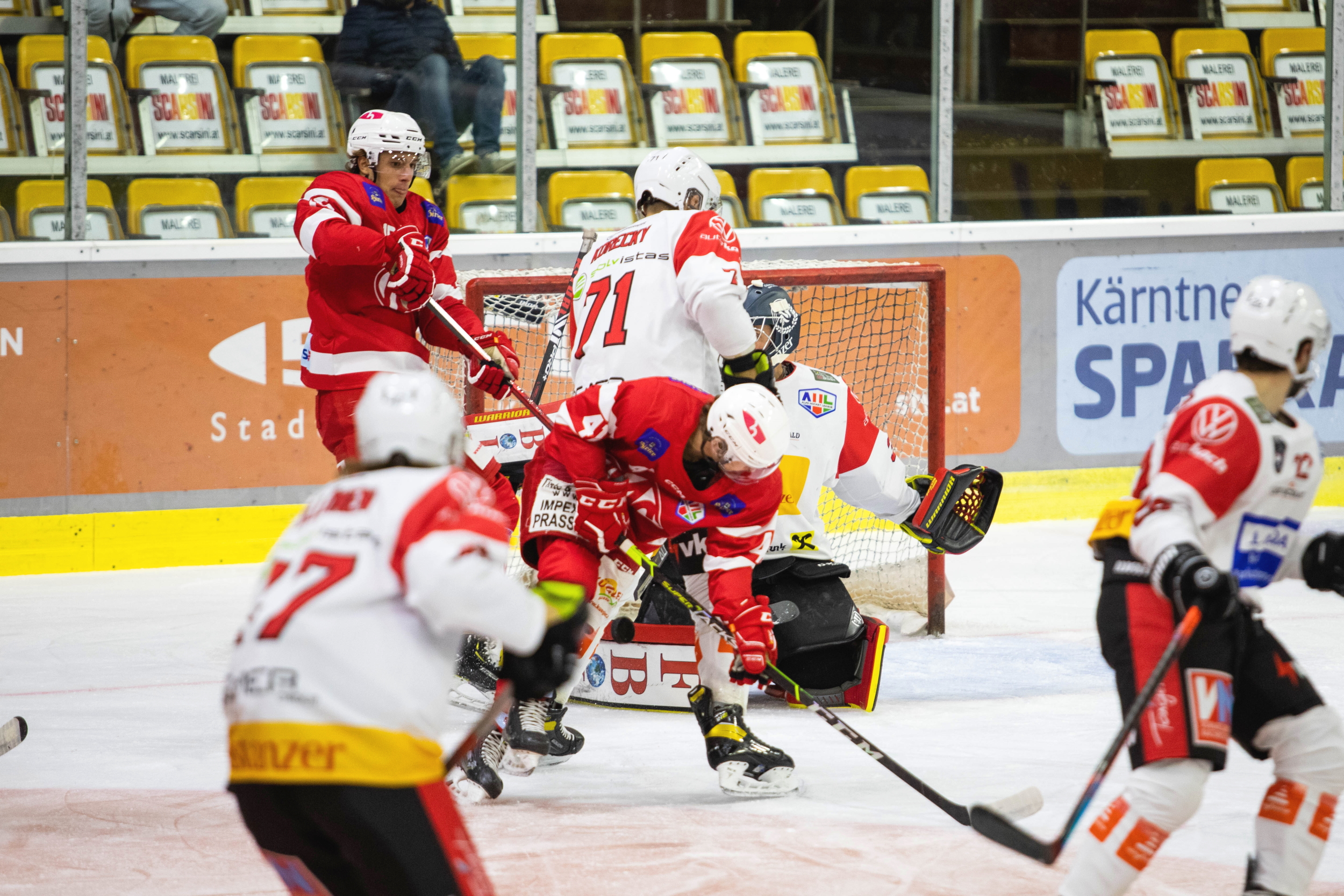Auch in den dritten Durchgang starteten die jungen Rotjacken besser: Am Ende eines „Drei-gegen-Zwei“-Konters servierte Marcel Witting ideal auf Dennis Sticha, der aber aus zentraler Position an Caffis Catcher scheiterte (43.). Gleich im nächsten Angriff gelang der längt fällige zweite Treffer: Tobias Sablattnig stocherte den Puck aus der eigenen Zone in den Lauf von Rok Kapel, der steil ging und sehr spät auf den mitgelaufenen Verteidiger querlegte, Sablattnig schrieb wie schon beim Heimsieg am Donnerstag an (44.). Bald folgte der nächste, schön zu Ende gespielte „Drei-gegen-Zwei“-Angriff der Klagenfurter, nun war es Niki Kraus, der aus kurzer Distanz in Caffi seinen Meister fand (46.). Danach wurde es für das Future Team brenzlig, gleich 100 Sekunden lang musste man sich bei „Drei-gegen-Fünf“ beweisen, löste die Aufgabe aber bravourös, Rosenberger von rechts und Stanley von links, beide aus spitzem Winkel, trafen nur die Außenstange (49. bzw. 50.).