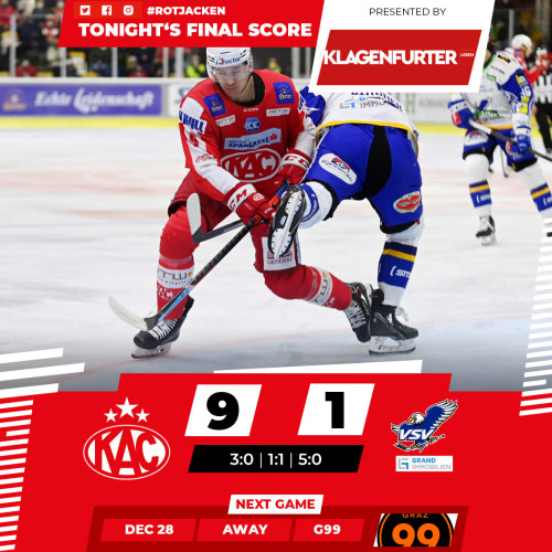 Spielbericht: „Rotjacken-Triumph im Derby“ (kac.at, 26.12.2021)