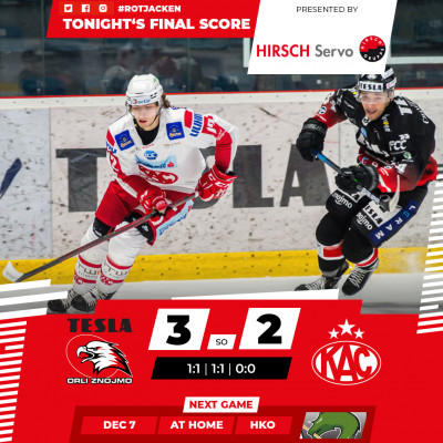 Die letzte Begegnung zwischen dem EC-KAC und dem HC Orli Znojmo datiert vom 5. Dezember, damals setzten sich die Adler auf eigenem Eis mit 3:2 nach Penaltyschießen durch. Den frühen rot-weißen Führungstreffer durch Niki Kraus egalisierte Radek Prokeš, als Znojmos Topscorer zu Beginn des zweiten Durchgangs seinen Doppelpack schnürte, antwortete Matt Fraser mit dem Ausgleich. Danach fiel über knapp 41 Spielminuten hinweg kein Treffer mehr, erst der zehnte Versuch im Shootout brachte die Entscheidung (für die Routinier Tomáš Svoboda verantwortlich zeichnete). Die beiden Teams begegneten sich in dieser Paarung weitestgehend auf Augenhöhe: Nach regulärer Spielzeit standen jeweils 26 Torschüsse zu Buche, die Rotjacken waren am Faceoff-Punkt (54,1 Prozent) und hinsichtlich des Puckbesitzes (52,3 Prozent bei Even Strength) einen Tick erfolgreicher. Beide Mannschaften konnten jeweils 6:00 Minuten an numerischem Vorteil nicht in einen Treffer verwandeln. Die Tschechen verstanden es allerdings besser, in die gefährliche Zone vorzudringen (21:9 Torschussversuche und 11:6 Torschüsse aus dem Slot), sowie Schüsse von der blauen Linie aus auch auf den Kasten zu bringen: 64,3 Prozent ihrer Versuche aus der Distanz gingen tatsächlich auf das Tor, bei den Klagenfurtern lag dieser Wert lediglich bei 35,7 Prozent.