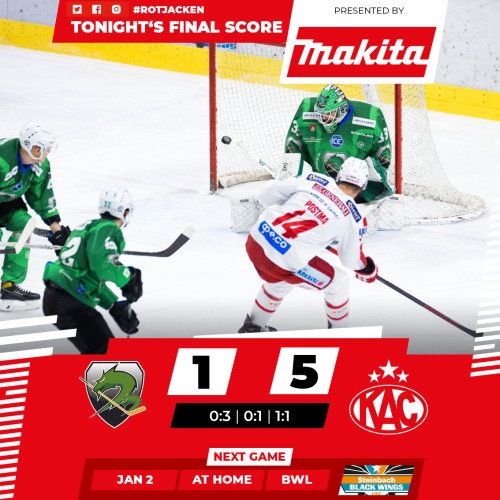Der EC-KAC und der HK Olimpija Ljubljana duellierten sich zuletzt am 30. Dezember, auch damals war die Hala Tivoli in Sloweniens Hauptstadt der Austragungsort. Die Rotjacken setzten sich in dieser Begegnung klar mit 5:1 durch, den Grundstein zum Erfolg legten sie mit drei unbeantworteten Treffern im Startdrittel. Das dritte dieser Tore erzielte Johannes Bischofberger, der später im Spiel von Anže Ropret so gecheckt wurde, dass er seither keines der insgesamt zwölf Ligaspiele seines Klubs mehr bestreiten konnte. Das deutliche Endergebnis spiegelte nur bedingt die Charakteristik der Partie wider, Klagenfurt war lediglich jene Mannschaft, die ihre Gelegenheiten effizienter nutzen konnte. Hinsichtlich des Scheibenbesitzes bei Even Strength hatten die Slowenen die Nase sogar leicht vorne (50,9 Prozent), allerdings kamen die Rotjacken besser in die wirklich gefährlichen Positionen, wie das Torschussverhältnis aus dem Slot (20:12) zeigte. Keinen Erfolg verbuchte das Powerplay-Personal auf beiden Seiten: Ljubljana und Klagenfurt teilten sich insgesamt zehn Möglichkeiten numerischen Vorteils mit einer Gesamtdauer von 17:34 Minuten, daraus resultierte jedoch kein Treffer. Überragender Mann am Eis aus KAC-Sicht war Kapitän Manuel Ganahl, der vier Scorerpunkte sowie ein +4-Rating verbuchen konnte.