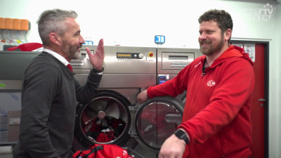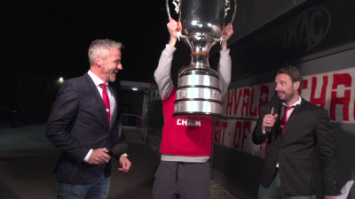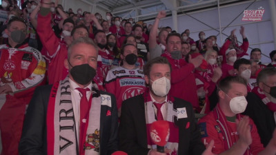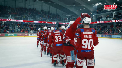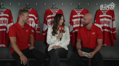 Mit dem Beginn der Playoffs wechselt das Magazin von #Rotjacken-TV wieder in den unregelmäßigen Erscheinungsrhythmus: Vor dem Start der Viertelfinalserie des EC-KAC gegen die Pioneers Vorarlberg war die Crew am Samstagvormittag beim Abschlusstraining des Grunddurchgangssiegers in der Heidi Horten-Arena zu Besuch, um alle Fans der Rotjacken mit den wichtigsten Informationen rund um die schönste Zeit des Eishockeyjahres zu versorgen. Am Kabinengang diskutieren Joschi Peharz und Marc Brabant die Ausgangssituation für die Klagenfurter vor der ersten KO-Runde, mitgebracht haben sie auch die schönsten und emotionalsten Bilder aus den 24 Heimspielen der Regular Season. Während die Mannschaft am Eis trainiert, analysiert das Moderatorenduo dann den Viertelfinalgegner aus Vorarlberg, der später in Person von Patrick Spannring auch seine Meinung zu den bevorstehenden Duellen abgibt. Auf Seiten der Rotjacken liefern Jan Muršak, Clemens Unterweger und Head Coach Kirk Furey ihre Einschätzungen zum Kontrahenten und zur bevorstehenden Aufgabe. Rinkside Reporterin Nadine Pessentheiner gibt einen Überblick über die Entwicklung der Personalsituation in den Tagen vor dem Serienauftakt, danach erfolgt der Wechsel in die Fankurve, wo Max von den Rude Boys über seine beim letzten Grunddurchgangsspiel witterungsbedingt zu Ende gegangene Serie von 128 live und direkt vor Ort erlebten KAC-Spielen erzählt. Zum Abschluss von Episode 26 finden sich Joschi Peharz und Marc Brabant noch einmal auf der Gäste-Spielerbank ein, um die wichtigsten organisatorischen Fragen rund um den Viertelfinalauftakt zu beantworten.
