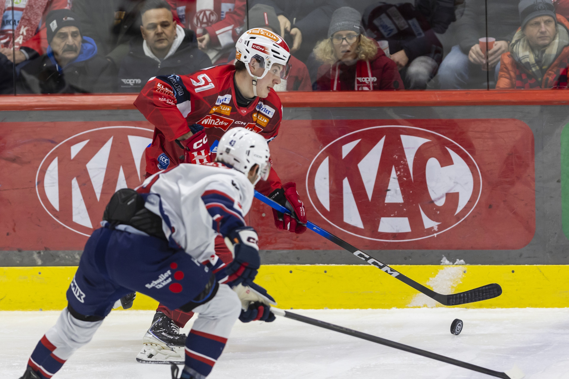 Fehérvár AV19 gelang nur 71 Sekunden nach Wiederbeginn der Anschlusstreffer: Joel Messner schlenzte vom hinteren Ende des rechten Anspielkreises aus in die lange Kreuzecke, Csanád Erdély hatte am Torraum den eingesprungenen Screen gestellt (22.). Nachdem ein Klagenfurter „Vier-gegen-Zwei“-Angriff versandet war (23.) und Darren Archibald aus halblinker Position nur Florian Vorauers Maske getroffen hatte (24.), gelang den Gästen der Ausgleich: Von der eigenen Zone aus ging István Bartalis steil, er umkurvte Lennart Leitner außen und zog flach zum Kasten, mit der Vorhand schob er die Scheibe flach durch die Beine des KAC-Goalies (24.). In ihrem fast unmittelbar danach folgenden ersten Unterzahlspiel verteidigten sich die Rotjacken geschickt, dann legten sie wieder den Vorwärtsgang ein: Mathias From scheiterte mit zwei Direktabnahmen aus spitzen Winkeln knapp (jeweils 30.), als Fabian Hochegger im Rückraum den Puck erlief und mit der Vorhand schoss, wehrte Dominik Horváth mit der Schulter ab (32.). Bei einem satten van Ee-Onetimer aus dem halblinken Rückraum fuhr der Fehérvár-Schlussmann seinen Beinschoner aus (33.). Die Magyaren erweiterten einen „Zwei-auf-Eins“-Konter um einen dritten, nachstoßenden Stürmer, Erdély zog von zwischen den Hashmarks aus ab, Florian Vorauer parierte großartig, Hochegger klopfte den für die Gäste aussichtsreichen Rebound aus der unmittelbaren Gefahrenzone (34.). Nach einem Klagenfurter Turnover bestand der Rotjacken-Goalie die Prüfung in Form von Gerlachs Schlenzer von rechts aus (35.), auf der Gegenseite bekam ein ungarischer Verteidiger im letzten Moment seinen Schläger in den Weg eines Petersen-Abschlusses aus dem Zentrum, wohin dieser mit einem feinen Doppelhaken vorgestoßen war (39.).