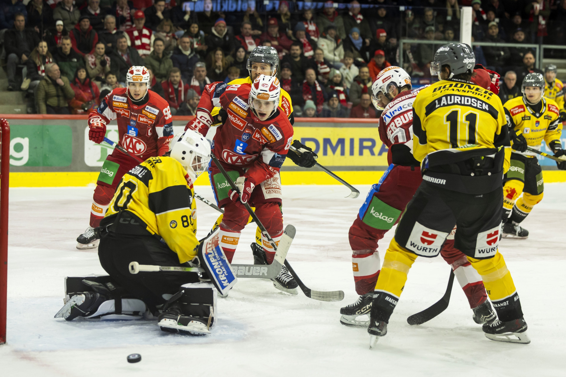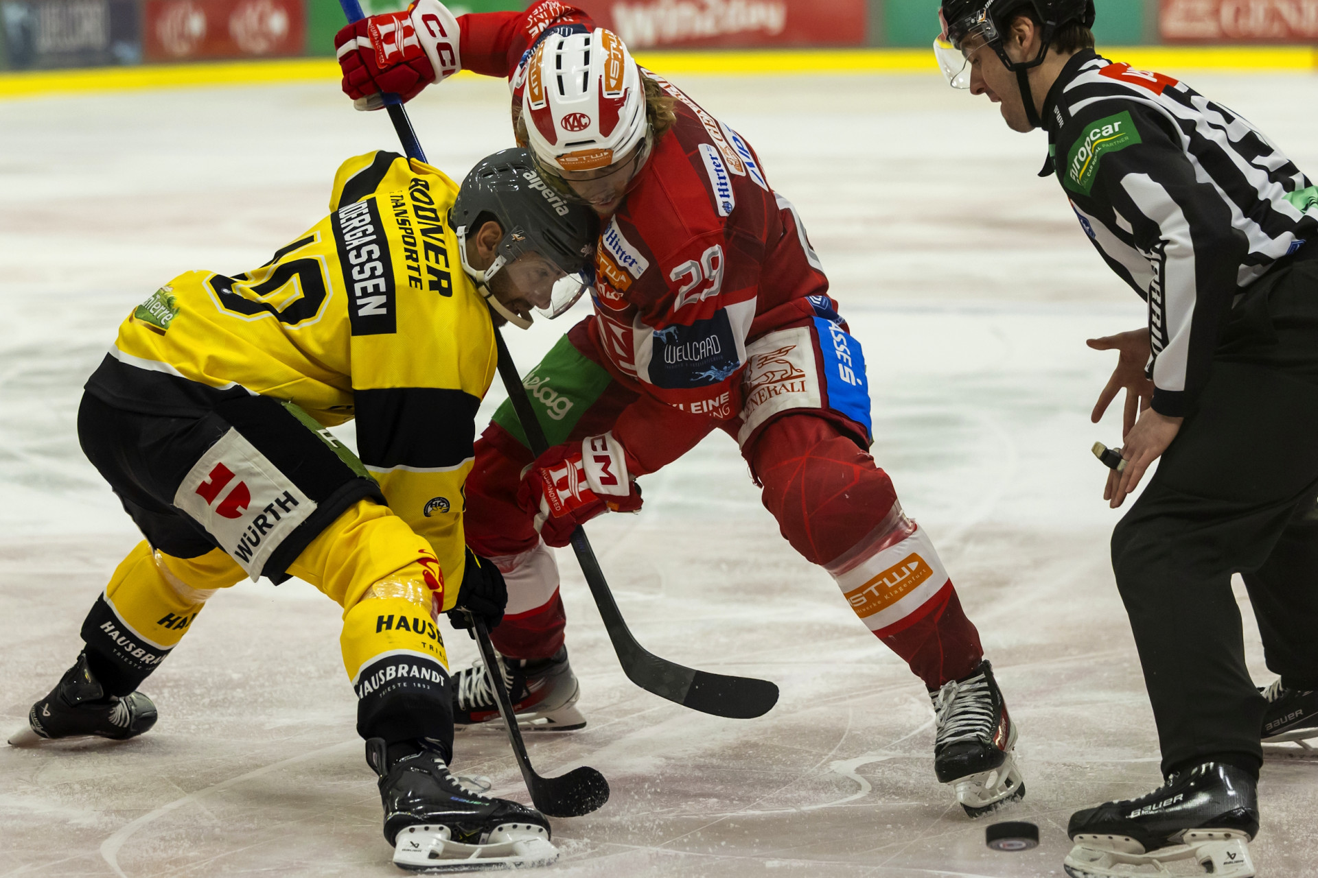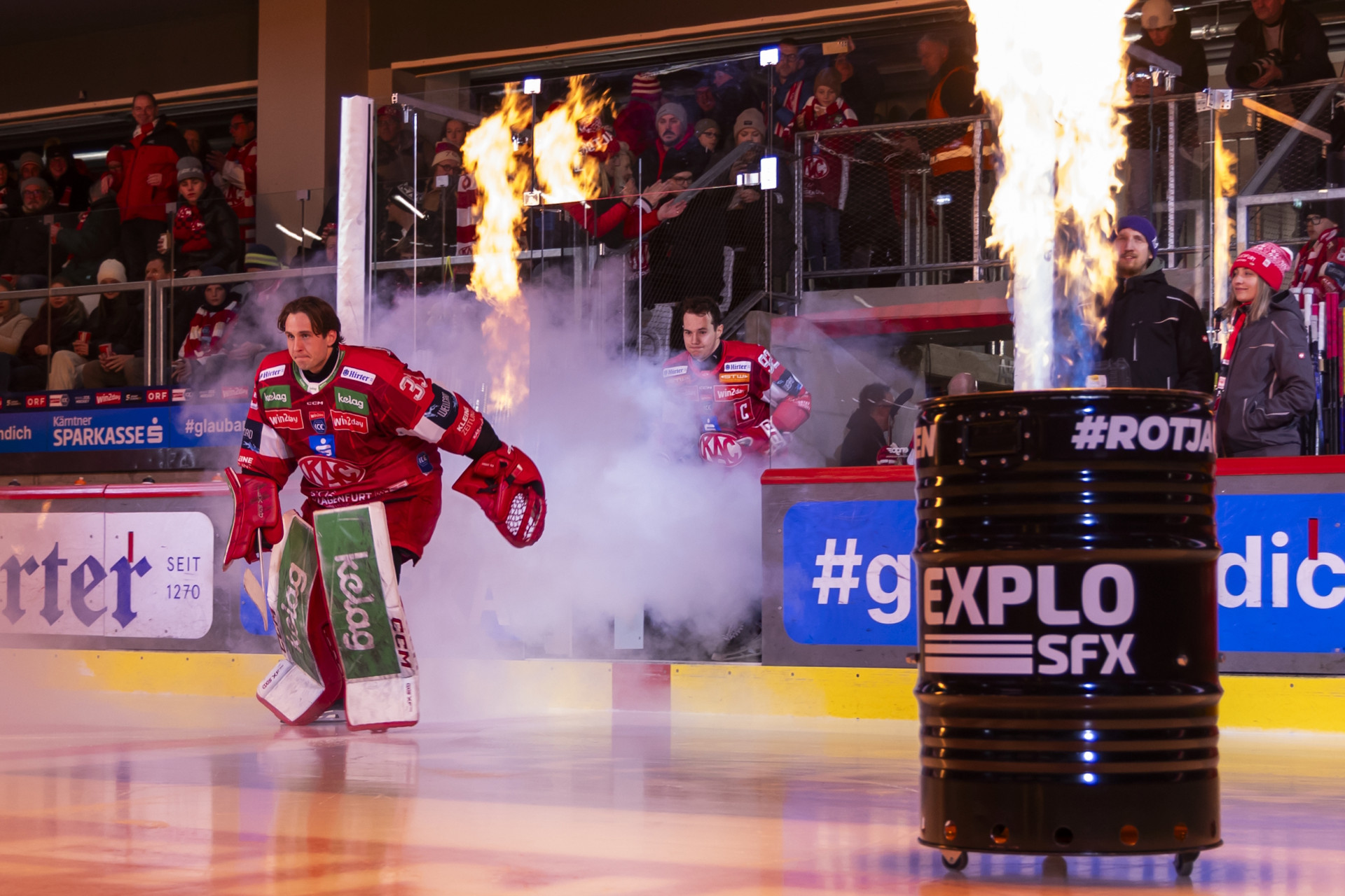 Die Rotjacken gingen gleich im ersten Shift in Führung: Nick Petersen tippte den Puck am linken Flügel in den Weg von Simeon Schwinger, der an Di Tomaso vorbei diagonal zum Kasten zog und Goalie Pasquale mit der Vorhand tunnelte (1.). Auf Seiten der Wölfe ließ Austin Rueschhoff im Rückraum für Tommy Purdeller liegen, dieser schlenzte vom hinteren Ende des rechten Anspielkreises aus scharf, der Puck detonierte halbhoch an der langen Stange (5.). Im ersten Powerplay für den EC-KAC flogen zwei Abfälscher von Unterweger-Bluelinern über das Gehäuse (9.), zuvor hatte Alex Ierullo im Konter von rechts aus nur die Außenstange in der kurzen Ecke getroffen (8.). Als Rueschhoff aus halbrechter Position an der blauen Linie schlenzte und Purdeller an den rechten Hashmarks tippte, segelte die Scheibe lediglich hauchdünn flach an der langen Stange vorbei (14.). Im ersten Überzahlspiel für die Gäste befreite sich Rot-Weiß nicht nur ganze sechs Mal, man traf auch bei numerischem Nachteil: Von der eigenen blauen Linie aus gingen Mario Kempe und Mathias From in den „Zwei-gegen-Eins“-Konter, der Schwede spielte den späten Querpass und der Däne vollendete aus kurzer Distanz (16.). Am Ende des HCP-Powerplays landete ein Abpraller an der verlängerten Torlinie bei Rok Tičar, der kurzzeitig viel freies Netz vor sich hatte, Thimo Nickl und Florian Vorauer schlossen die Lücke im Verbund (17.). Als sich Nick Saracino steil durch das Zentrum tankte und der Puck am Crease hängenblieb, stocherte der nachstoßende Daniel Glira nach, jedoch auch knapp am Ziel vorbei (20.). Knapp 13 Sekunden vor der ersten Pause kamen die Südtiroler doch noch auf die Anzeigetafel: Raphael Andergassen chippte die Scheibe aus dem rechten Rückraum zur Mitte, Henry Bowlby klopfte sie vor dem Torraumaus der Luft und ließ sie mit der zweiten Berührung durch Florian Vorauers Beine rutschen (20.).