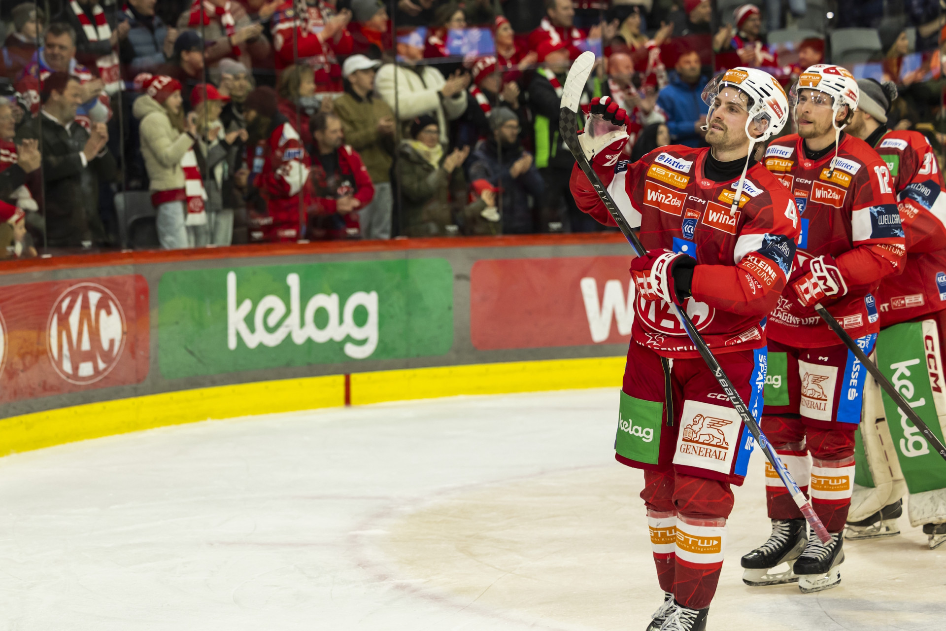 Durchgang drei erlebte einen Bowlby-Fehlschuss vom linken Flügel aus (43.), ehe die Klagenfurter wieder mit einem Mann mehr agieren durften: Josh Teves stoppte einen Odd Man Rush der Wölfe ganz alleine, legte sofort den Vorwärtsgang ein und eröffnete damit eine “Drei-gegen-Zwei“-Gelegenheit, die nach schöner Kombination mit Mario Kempe am rechten Flügel bei Mathias From endete, ein HCP-Verteidiger bekam im letzten Moment seinen Stock dazwischen und lenkte den Schuss ab (47.). Dann beförderte Purdeller einen Rebound vom Zentrum aus nach Rechtsaußen, wieder hatte Rok Tičar zwar einen spitzen Winkel aber auch viel Einschussfläche vor sich, nun blockte Kempe stark (49.). Der EC-KAC konterte, ein Lob in die Angriffszone kam vor dem Tor direkt bei Raphael Herburger aus der Luft, dieser wurde noch regelwidrig an einem zielgerichteten Abschluss gehindert (49.). Im daraus resultierenden Powerplay hatten die Klagenfurter zwei gute Chancen auf die Vorentscheidung: Zunächst tippte van Ee einen Muršak-Schlenzer hauchdünn neben die Stange (51.), dann wurde der Mittelstürmer von der Grundlinie aus von Raphael Herburger am Torraum bedient, sein Direktschuss landete an der Schulter des gut reagierenden Pasquale (52.). Die Gäste erhöhten nun den Druck: Florian Vorauer fror die Scheibe gerade noch vor dem einkehrbereiten Alan Lobis ein (55.), der Goalie sicherte sich auch die nach Blum-Schuss freiliegende Scheibe im Nahbereich seines Gehäuses (56.). Dann gelang dem HC Pustertal sein zweiter Treffer: Bowlby fälschte einen Zanatta-Schuss aus dem linken Anspielkreis ab und Mikael Frycklund schob die Scheibe aus dem Crease über die Linie (56.). Die Gäste rannten danach mit sechs Feldspielern an, gestützt auf einen starken Florian Vorauer – so bei einem Rueschhoff-Drehschuss aus halbrechter Position (60.) – kam die KAC-Abwehr aber nicht mehr ins Wanken, der Rekordmeister baute seine Tabellenführung wieder aus.