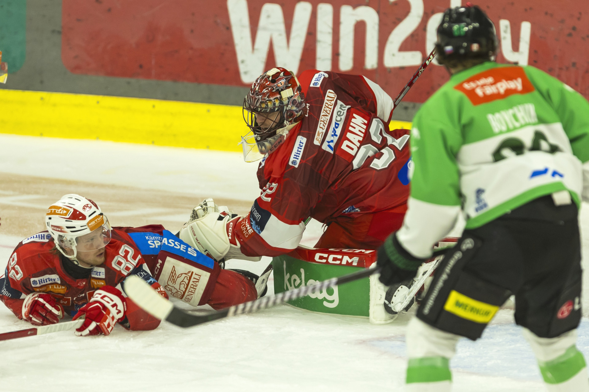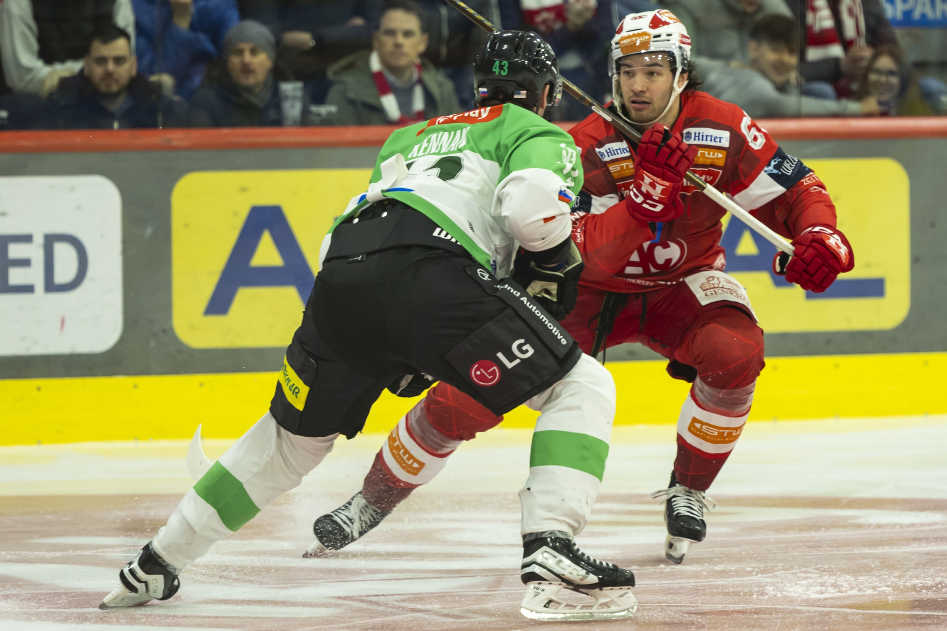 Den Rotjacken war anfangs die fast dreiwöchige Spielpause anzumerken, zu konkreten Möglichkeiten kamen zunächst nur die Gäste aus Slowenien: Nachdem die Scheibe zu ihm durchgesteckt worden war, schnitt Marcel Mahkovec über halbrechts flach zum Tor, Sebastian Dahm parierte seinen Vorhandversuch (3.). Bei numerischer Unterlegenheit spritzte Žiga Pance in einen KAC-Wechselvorgang, er zog über links diagonal und frei zum Kasten, chippte den Puck mit der Rückhand aber nur an die Oberkante der Querlatte (6.). Im rot-weißen Powerplay traf Mario Kempe nach feinem van Ee-Pass beim Onetimer den Puck nicht richtig (6.). Ein MacWilliam-Schlenzer aus dem linken Rückraum wurde am Torraum von einem Schlittschuh um Zentimeter an der Stange vorbei abgefälscht (10.), gleich erging es auf der Gegenseite einem tiefen Muršak-Querpass durch den Torraum (12.). Der Mittelstürmer zog noch im gleichen Shift aus dem zentralen hohen Slot ab, Simeon Schwinger lenkte die Scheibe mit seinem Schläger über das Ziel ab (13.). In der Schlussphase des ersten Drittels erhöhten die Rotjacken die Schlagzahl in der Offensive: Finn van Ee schob sich mit Körpereinsatz hinter seinem letzten Gegenspieler vorbei, brachte dann vor Goalie Luka Kolin in Bedrängnis aber keinen Schuss mehr an (19.). Einen starken Murray-Pass aus der linken Rundung übernahm Matt Fraser am Torraum direkt, er traf das Spielgerät allerdings nicht voll, sodass es vom Torhüter unter seinem Beinschoner eingeklemmt werden konnte (20.).