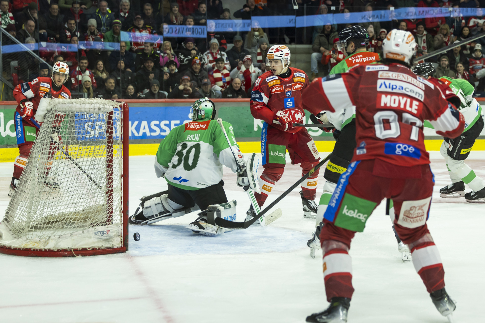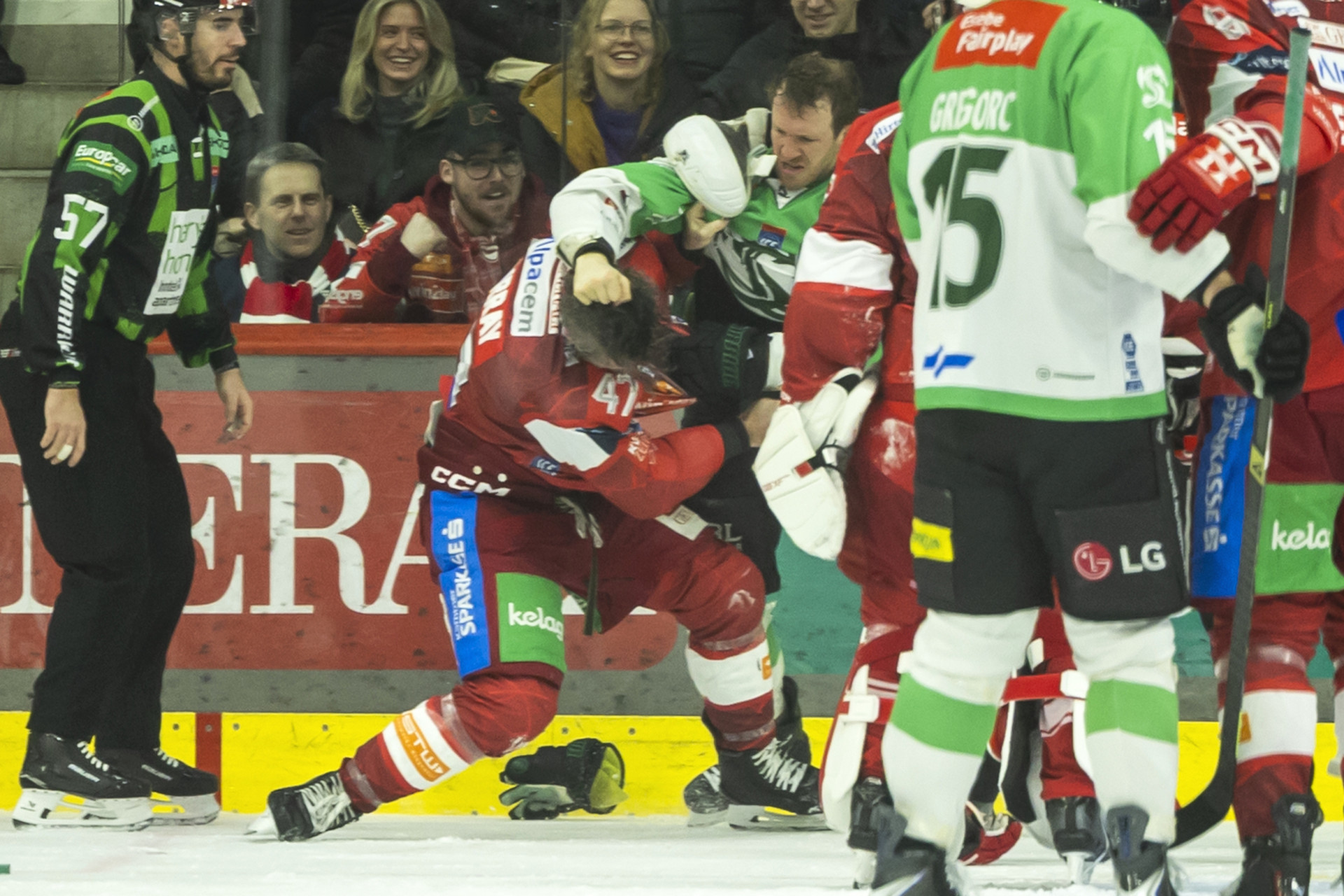 Im dritten Durchgang passte Moyle von hinter dem Tor aus an den Torraum zu Matt Fraser, ein slowenischer Verteidiger bekam im letzten Moment seinen Schlittschuh dazwischen (42.). Im fünften Powerplay des Abends für die Gäste zog T. J. Brennan aus dem hohen Slot ab, Sebastian Dahm war aber wie bei mehreren Schüssen aus der Halbdistanz in dieser Phase auf dem Posten (46.). Als Pance vor dem halbleeren Tor noch einmal querlegte, rettete Tobias Sablattnig (50.), bei einem „Drei-auf-Zwei“ für Klagenfurt fiel Schwingers Querpass auf Petersen zu ungenau aus (51.). Dann räumte Nathanael Halbert Sebastian Dahm ab, Jordan Murray stellte ihn und ging als klarer Sieger aus dm spektakulären Faustkampf hervor (52.). Durch einen MacWilliam-Ausschluss wenig später ergab sich für die Rotjacken eine „Fünf-gegen-Drei“-Überzahlmöglichkeit, die sie schließlich auch zum ersehnten Führungstreffer nutzen konnten: Mathias From jagte aus halbrechter Position im Rückraum einen seiner scharfen Wristshots via Stange in die Maschen, Finn van Ee hatte den guten Screen gestellt (53.). Nachdem bei einem Odd Man Rush der Querpass von Nolan Moyle hängengeblieben war (55.), setzte Ljubljana in der Schlussphase alles auf eine Karte und stürmte mit sechs Feldspielern: Josh Teves blockte einen Versuch von Nicolai Meyer, sprintete dem Puck in die linke Ecke der Defensivzone nach und setzte ihn von dort aus über das gesamte Spielfeld hinweg zur Entscheidung in das leere Tor (60.). Die Gäste verloren die Nerven und kassierten in den verbleibenden 35 Spielsekunden noch zahlreiche Strafen, neben Zach Boychuk musste auch sein Trainer Ben Cooper vorzeitig in die Kabine, gleich erging es Jan Muršak und T. J. Brennan, die nicht voneinander lassen konnten, sodass sie von den Linesmen nicht nur vom Eis, sondern sogar durch den Tunnel bis in die Kabinen begleitet wurden (60.). Mit dem 15. Heimsieg der Saison fixierte der EC-KAC das Heimrecht im Playoff-Viertelfinale endgültig.