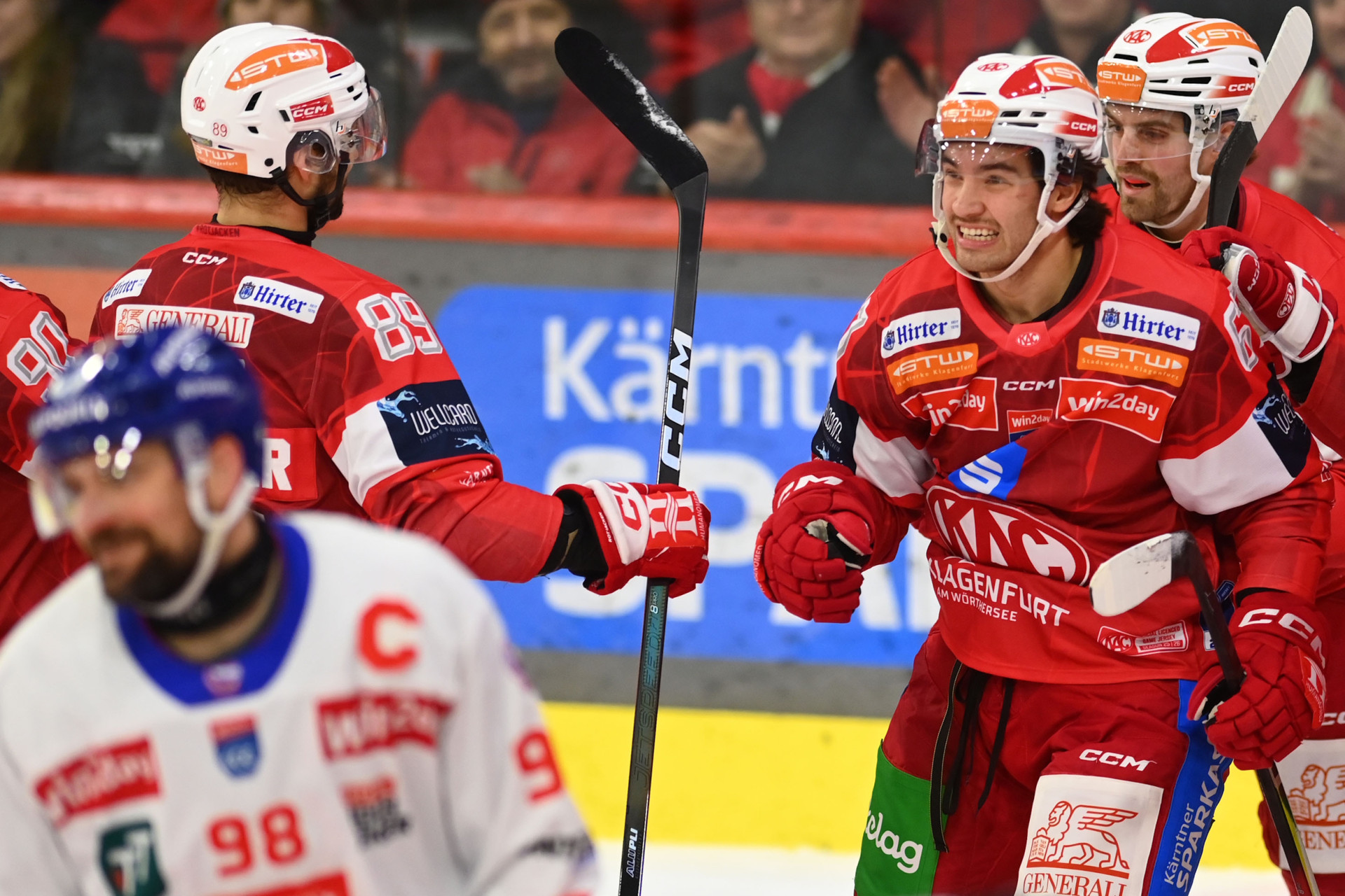 Gegen den frei vor ihm aufgetauchten Mario Kempe und bei einer Direktabnahme von Nick Petersen stellte sich in der ersten Spielminute zwei Mal HCI-Goalie Matt Vernon in den Mittelpunkt, im ersten Klagenfurter Überzahlspiel musste der US-Amerikaner aber bereits hinter sich greifen: Raphael Herburgers Schlenzer vom hinteren Ende des rechten Anspielkreises aus landete abgefälscht in den Maschen (4.). Auch die Gäste aus Tirol verwandelten ihr erstes Powerplay in einen Treffer: Nach gewonnenem Faceoff kam der Puck vom rechten Flügel via blaue Linie nach links zu Max Coatta, der per Direktabnahme traf (7.). Nach schaumgebremsten Minuten neuerlich in Führung gehen konnte der EC-KAC wieder bei numerischem Vorteil: Herburger passte von links aus an den kurzen Pfosten zu Nolan Moyle, der sich eindrehte, im ersten Abschluss an Vernon hängenblieb, den Puck im zweiten Versuch aber über die Linie drücken konnte (12.). Nachdem Innsbrucks Schlussmann einen Maier-Schuss fallengelassen hatte, schob Simeon Schwinger den Rebound mit der Rückhand aus spitzem Winkel auf die Außenstange (14.), die nächste Offensivszene endete allerdings wieder mit einem rot-weißen Treffer: David Maier kickte den Puck in der eigenen Zone zu Mathias From, dieser ging halbrechts steil und traf dann mit einem Wristshot aus dem rechten Anspielkreis via Innenstange zum 3:1 (14.). Eine Fraser-Direktabnahme von den linken Hashmarks aus nach Herburger-Kurzpass landete unglücklich nur am HCI-Goalie (18.), dessen Gegenüber, Sebastian Dahm, stoppte im Gegenzug ein partielles Breakaway von Lukas Bär mit den Beinschonern (19.).