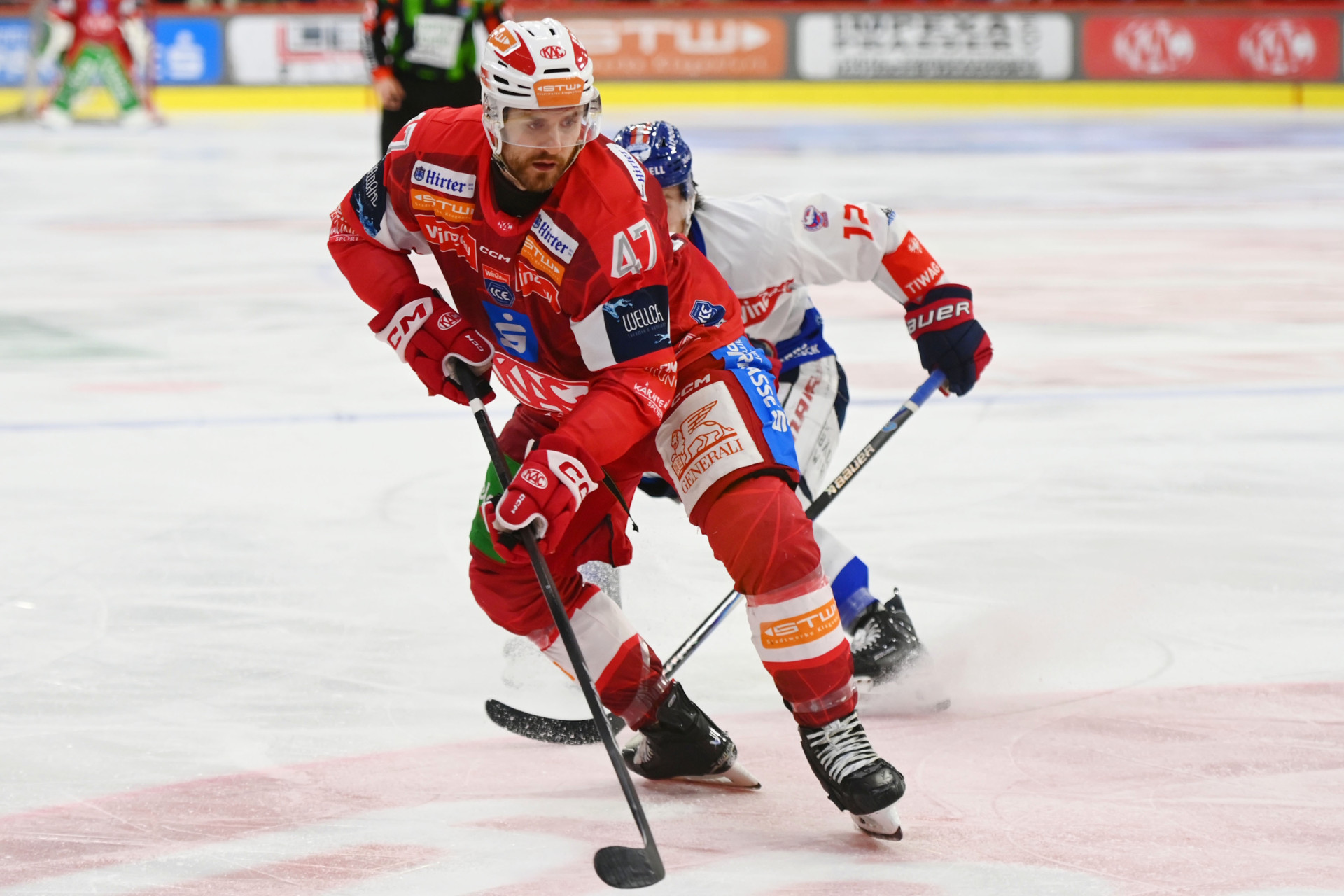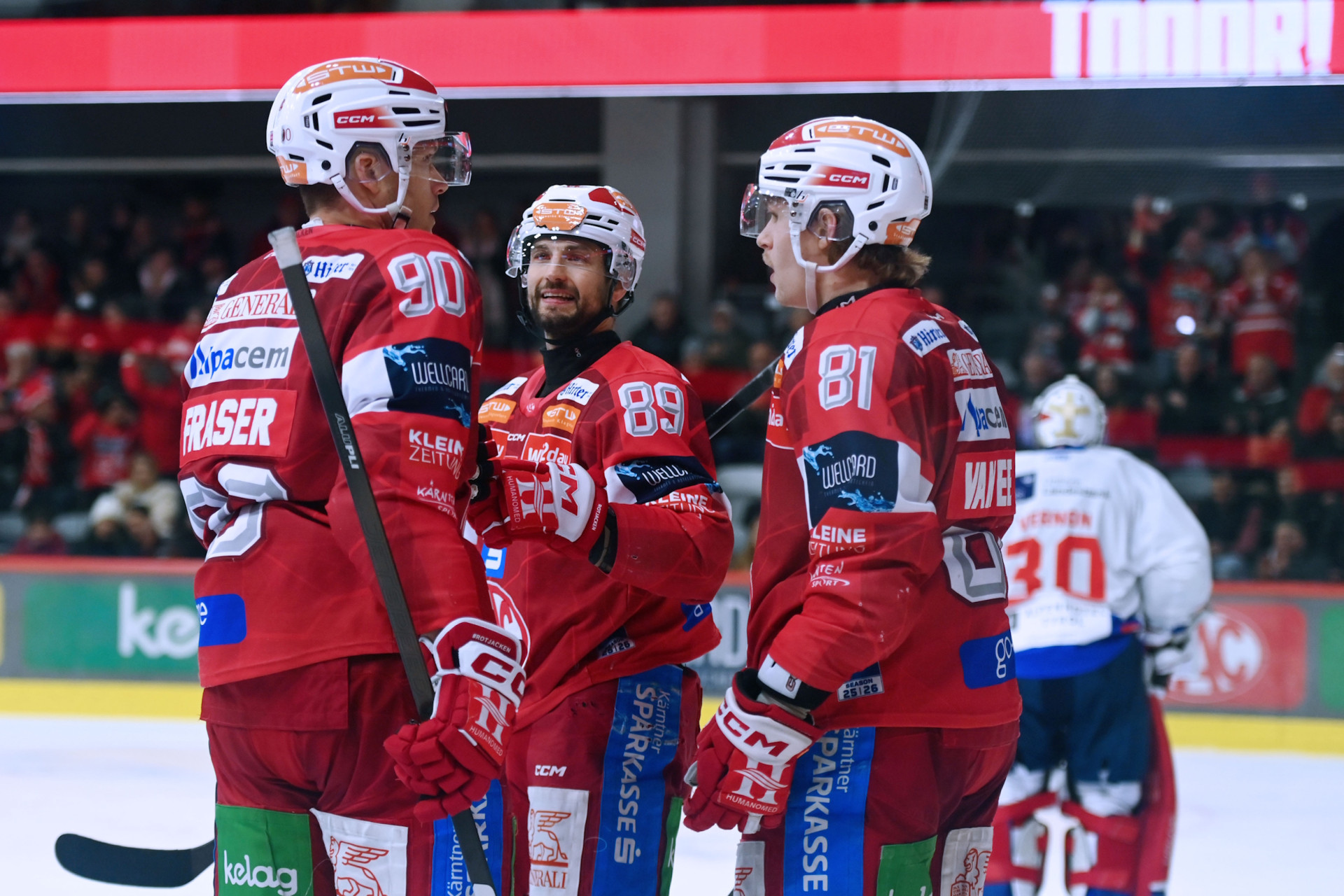 Nach knapp einer Minute im Schlussdrittel gelang den Haien ihr zweiter Treffer des Abends: Sebastian Benker eroberte sich den Puck in der eigenen Zone, ging steil und passte nach dem Eintritt in das Offensivdrittel nach links zu Sproule, der sofort retournierte, der Schwede verlud Sebastian Dahm und traf flach zum 5:2 (41.). Im partiellen Breakaway zog Daniel Obersteiner über die rechte Seite diagonal zum Tor (43.), blieb letztlich aber ebenso an Matt Vernon hängen wie Nolan Moyle aus kurzer Distanz, dazwischen war ein scharfer From-Querpass von einem HCI-Verteidiger nur an die Stange abgefälscht worden (jeweils 44.). Der Goalie der Tiroler brachte dann innerhalb eines Shifts zwei Mal Simeon Schwinger, jeweils toll in Szene gesetzt von Nick Petersen, zum Verzweifeln (jeweils 48.), in seinem dritten Powerplay der Begegnung schrieb der EC-KAC dann aber auch zum dritten Mal an: Von der linken Seite der Grundlinie aus passte Moyle diagonal zurück, vom hinteren Ende des rechten Faceoff-Kreises aus traf Clemens Unterweger durch die Beine des Schlussmanns (53.). Ein aussichtsreicher Kempe-Durchbruch endete nur knapp nicht mit einem Treffer, brachte, weil der Rotjacken-Stürmer entscheidend gestört worden war, aber das vierte Überzahlspiel, das wiederum in einem Treffer mündete: Jan Muršak schlenzte von der blauen Linie aus, Nick Petersen stoppte den Puck am Crease mit seinem Körper und kehrte ihn dann aus der Drehung ein (55.). Einem rot-weißen „Drei-gegen-Eins“-Konter, an dessen Ende van Ee per Onetimer von links aus abzog, verweigerte Vernon mit seiner starken Seitwärtsbewegung die Krönung (56.), auf der Gegenseite war Sebastian Dahm beim Cobeil-Abschluss eines „Zwei-auf-Eins“-Angriffs im Powerplay zur Stelle (58.). Das Klagenfurter Publikum sang zu diesem Zeitpunkt bereits längst die siebte CHL-Teilnahme der Klubgeschichte herbei, die Rotjacken sind nicht mehr aus den Top-Zwei der Abschlusstabelle des Grunddurchgang zu verdrängen.